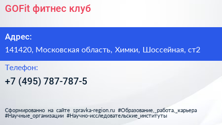GOFit, фитнес-клуб по адресу 141420, Московская область, Химки, Шоссейная, ст2 в дальнейшем Организация, размещена в следующих категориях: