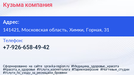 Кузьма, компания по адресу 141421, Московская область, Химки, Горная, 31 в дальнейшем Организация, размещена в следующих категориях: