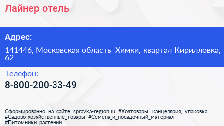 Лайнер, отель по адресу 141446, Московская область, Химки, квартал Кирилловка, 62 в дальнейшем Организация, размещена в следующих категориях: