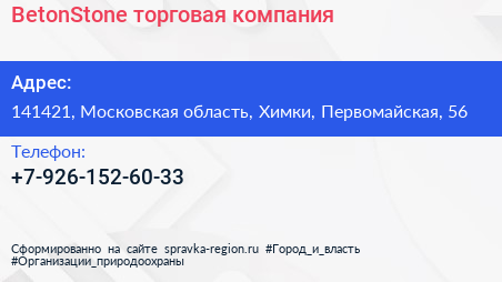 BetonStone, торговая компания по адресу 141421, Московская область, Химки, Первомайская, 56 в дальнейшем Организация, размещена в следующих категориях: