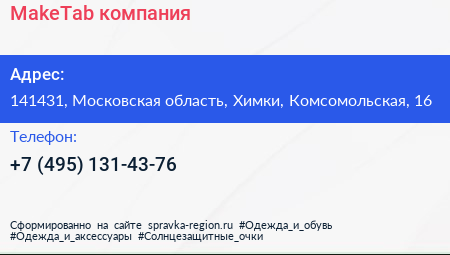 MakeTab, компания по адресу 141431, Московская область, Химки, Комсомольская, 16 в дальнейшем Организация, размещена в следующих категориях: