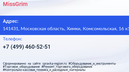 MissGrim по адресу 141431, Московская область, Химки, Комсомольская, 16 к1 в дальнейшем Организация, размещена в следующих категориях: