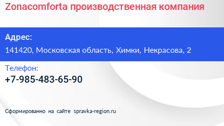 Zonacomforta, производственная компания по адресу 141420, Московская область, Химки, Некрасова, 2 в дальнейшем Организация, размещена в следующих категориях: