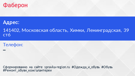 Фаберон по адресу 141402, Московская область, Химки, Ленинградская, 39 ст6 в дальнейшем Организация, размещена в следующих категориях: