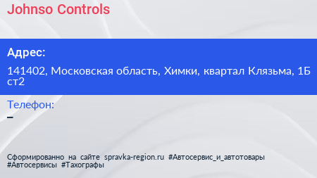 Johnso Controls по адресу 141402, Московская область, Химки, квартал Клязьма, 1Б ст2 в дальнейшем Организация, размещена в следующих категориях: