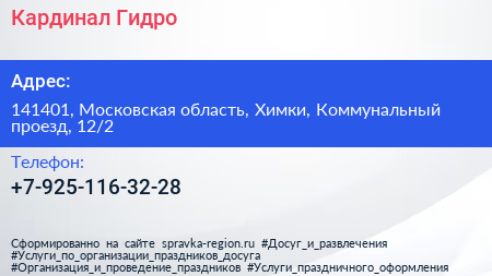 Кардинал Гидро по адресу 141401, Московская область, Химки, Коммунальный проезд, 12/2 в дальнейшем Организация, размещена в следующих категориях: