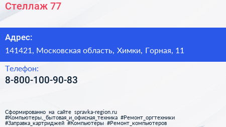Стеллаж 77 по адресу 141421, Московская область, Химки, Горная, 11 в дальнейшем Организация, размещена в следующих категориях: