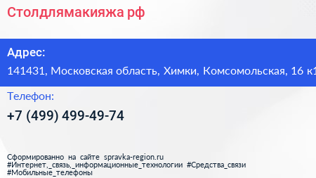 Столдлямакияжа.рф по адресу 141431, Московская область, Химки, Комсомольская, 16 к1 в дальнейшем Организация, размещена в следующих категориях: