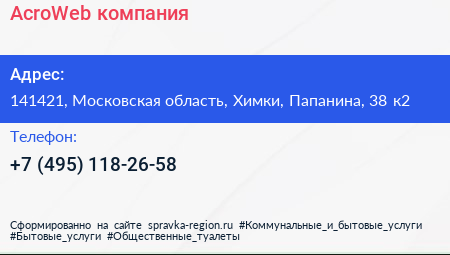 AcroWeb, компания по адресу 141421, Московская область, Химки, Папанина, 38 к2 в дальнейшем Организация, размещена в следующих категориях:
