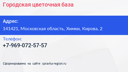 Городская цветочная база по адресу 141421, Московская область, Химки, Кирова, 2 в дальнейшем Организация, размещена в следующих категориях: