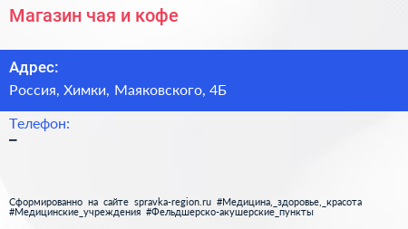 Магазин чая и кофе по адресу Компания по оптовым продажам металлопроката и металлообработке, 4Б, улица Маяковского, Москвич, Депо, городской округ Лобня, Московская область, Центральный федеральный округ, 141731, Россия в дальнейшем Организация, размещена в следующих категориях: