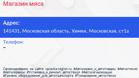 Магазин мяса по адресу 141431, Московская область, Химки, Московская, ст1а в дальнейшем Организация, размещена в следующих категориях: