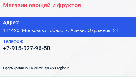Магазин овощей и фруктов по адресу 141420, Московская область, Химки, Овражная, 24 в дальнейшем Организация, размещена в следующих категориях: