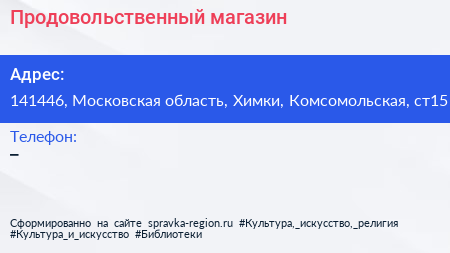 Продовольственный магазин по адресу 141446, Московская область, Химки, Комсомольская, ст15 в дальнейшем Организация, размещена в следующих категориях: