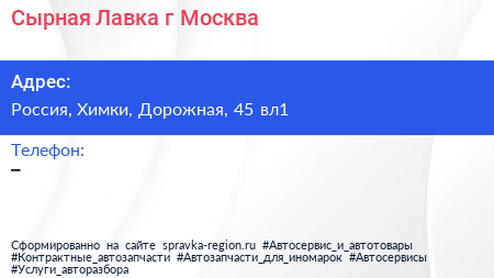 Сырная Лавка, г. Москва по адресу Яндекс.Маркет, Рогачёвское шоссе, посёлок совхоза "Останкино", Дмитровский городской округ, Московская область, Центральный федеральный округ, 141895, Россия в дальнейшем Организация, размещена в следующих категориях:
