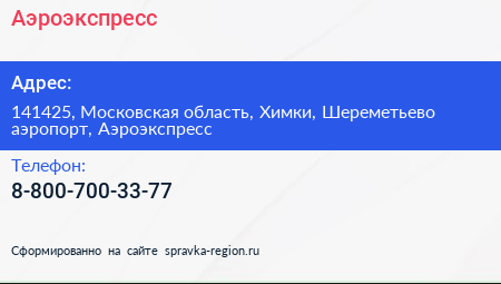 Аэроэкспресс по адресу 141425, Московская область, Химки, Шереметьево аэропорт, Аэроэкспресс в дальнейшем Организация, размещена в следующих категориях: