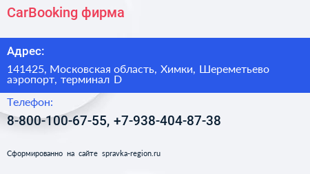 CarBooking, фирма по адресу 141425, Московская область, Химки, Шереметьево аэропорт, терминал D в дальнейшем Организация, размещена в следующих категориях: