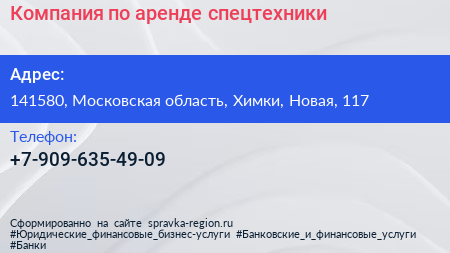 Компания по аренде спецтехники по адресу 141580, Московская область, Химки, Новая, 117 в дальнейшем Организация, размещена в следующих категориях: