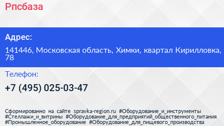 Рпсбаза по адресу 141446, Московская область, Химки, квартал Кирилловка, 78 в дальнейшем Организация, размещена в следующих категориях: