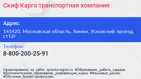 Скиф-Карго, транспортная компания по адресу 141420, Московская область, Химки, Усковский проезд, ст12г в дальнейшем Организация, размещена в следующих категориях: