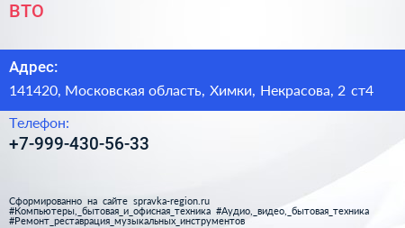 ВТО по адресу 141420, Московская область, Химки, Некрасова, 2 ст4 в дальнейшем Организация, размещена в следующих категориях: