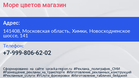 Море цветов, магазин по адресу 141408, Московская область, Химки, Новосходненское шоссе, 141 в дальнейшем Организация, размещена в следующих категориях: