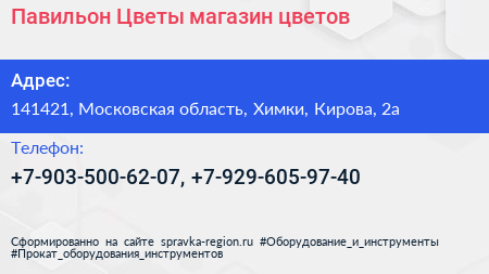Павильон Цветы, магазин цветов по адресу 141421, Московская область, Химки, Кирова, 2а в дальнейшем Организация, размещена в следующих категориях: