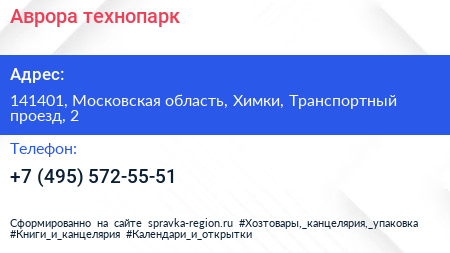 Аврора, технопарк по адресу 141401, Московская область, Химки, Транспортный проезд, 2 в дальнейшем Организация, размещена в следующих категориях:
