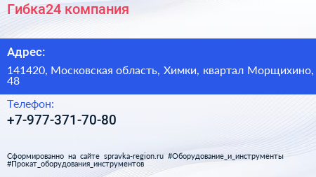 Гибка24, компания по адресу 141420, Московская область, Химки, квартал Морщихино, 48 в дальнейшем Организация, размещена в следующих категориях: