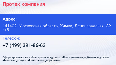 Протек, компания по адресу 141402, Московская область, Химки, Ленинградская, 39 ст5 в дальнейшем Организация, размещена в следующих категориях: