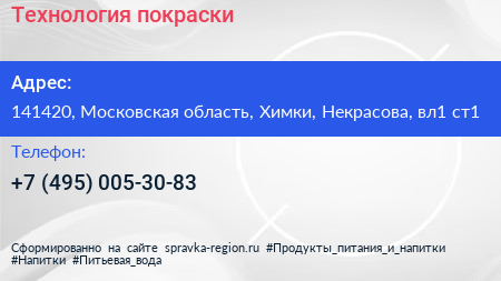 Технология покраски по адресу 141420, Московская область, Химки, Некрасова, вл1 ст1 в дальнейшем Организация, размещена в следующих категориях: