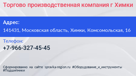 Торгово-производственная компания, г. Химки по адресу 141431, Московская область, Химки, Комсомольская, 16 в дальнейшем Организация, размещена в следующих категориях: