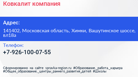 Ковкалит, компания по адресу 141402, Московская область, Химки, Вашутинское шоссе, вл18а в дальнейшем Организация, размещена в следующих категориях: