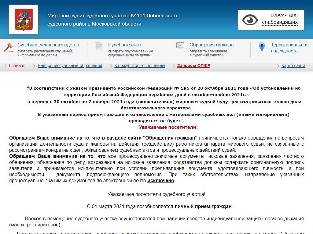 Мировые судьи Лобненского района по адресу ОУФМС по г. Лобня, 7 к1, улица Ленина, Москвич, Южный, Лобня, Московская область, Центральный федеральный округ, 141730, Россия в дальнейшем Организация, размещена в следующих категориях: