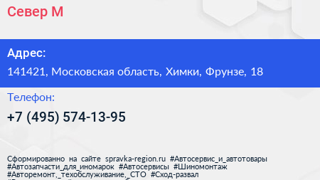 Север-М по адресу 141421, Московская область, Химки, Фрунзе, 18 в дальнейшем Организация, размещена в следующих категориях: