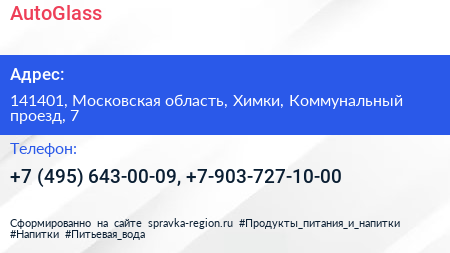 AutoGlass по адресу 141401, Московская область, Химки, Коммунальный проезд, 7 в дальнейшем Организация, размещена в следующих категориях: