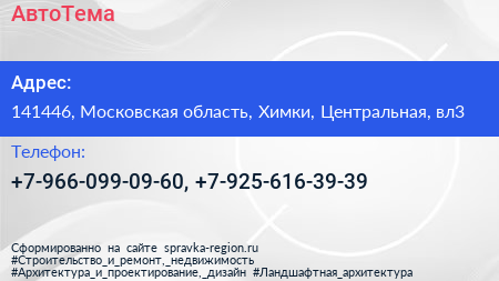 АвтоТема по адресу 141446, Московская область, Химки, Центральная, вл3 в дальнейшем Организация, размещена в следующих категориях: