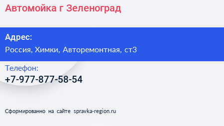 Автомойка, г. Зеленоград по адресу Складской комплекс "Грюнштадт", 3, Фирсановское шоссе, Восточная зона, Елино, Зеленоград, городской округ Солнечногорск, Московская область, Центральный федеральный округ, 115280, Россия в дальнейшем Организация, размещена в следующих категориях: