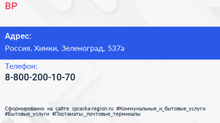 BP по адресу Роснефть, к538 соор1, Ленинградское шоссе, 5а микрорайон, район Савёлки, Зеленоград, городской округ Солнечногорск, Москва, Центральный федеральный округ, 124536, Россия в дальнейшем Организация, размещена в следующих категориях: