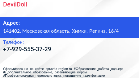 DevilDoll по адресу 141402, Московская область, Химки, Репина, 16/4 в дальнейшем Организация, размещена в следующих категориях: