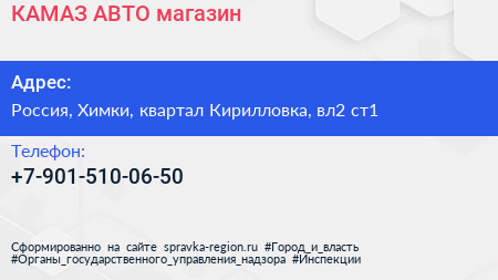 КАМАЗ-АВТО, магазин по адресу ТЦ Ленинградка, 2, Ленинградское шоссе, Черкизово, Молжаниновский район, Новоподрезково, Химки, городской округ Химки, Московская область, Центральный федеральный округ, 141436, Россия в дальнейшем Организация, размещена в следующих категориях: