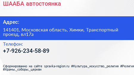 ШААБА, автостоянка по адресу 141401, Московская область, Химки, Транспортный проезд, вл17а в дальнейшем Организация, размещена в следующих категориях: