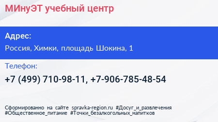 МИнуЭТ, учебный центр по адресу Национальный исследовательский университет «Московский институт электронной техники», 1, Центральный проспект, Южная промзона, район Старое Крюково, Зеленоград, Москва, Центральный федеральный округ, 124460, Россия в дальнейшем Организация, размещена в следующих категориях: