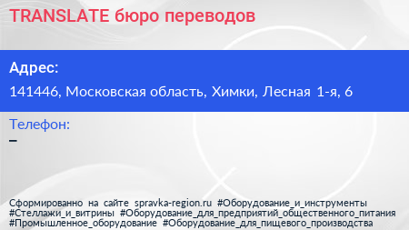 TRANSLATE, бюро переводов по адресу 141446, Московская область, Химки, Лесная 1-я, 6 в дальнейшем Организация, размещена в следующих категориях: