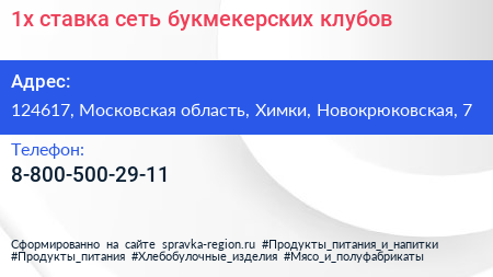 1x ставка, сеть букмекерских клубов по адресу 124617, Московская область, Химки, Новокрюковская, 7 в дальнейшем Организация, размещена в следующих категориях: