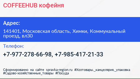 #COFFEEHUB, кофейня по адресу 141401, Московская область, Химки, Коммунальный проезд, вл30 в дальнейшем Организация, размещена в следующих категориях:
