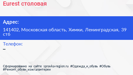 Eurest, столовая по адресу 141402, Московская область, Химки, Ленинградская, 39 ст6 в дальнейшем Организация, размещена в следующих категориях: