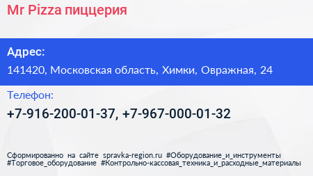 Mr.Pizza, пиццерия по адресу 141420, Московская область, Химки, Овражная, 24 в дальнейшем Организация, размещена в следующих категориях: