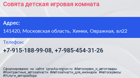 Совята, детская игровая комната по адресу 141420, Московская область, Химки, Овражная, вл22 в дальнейшем Организация, размещена в следующих категориях: