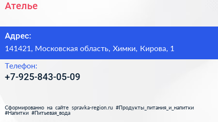 Ателье по адресу 141421, Московская область, Химки, Кирова, 1 в дальнейшем Организация, размещена в следующих категориях: